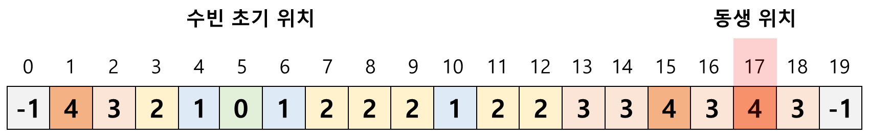 그리고 동생 위치인 17번째 인덱스 값이 -1에서 다른 값으로 바뀌었을 때 BFS를 종료하고 해당 값을 출력시켜 주면 답을 구할 수 있다.