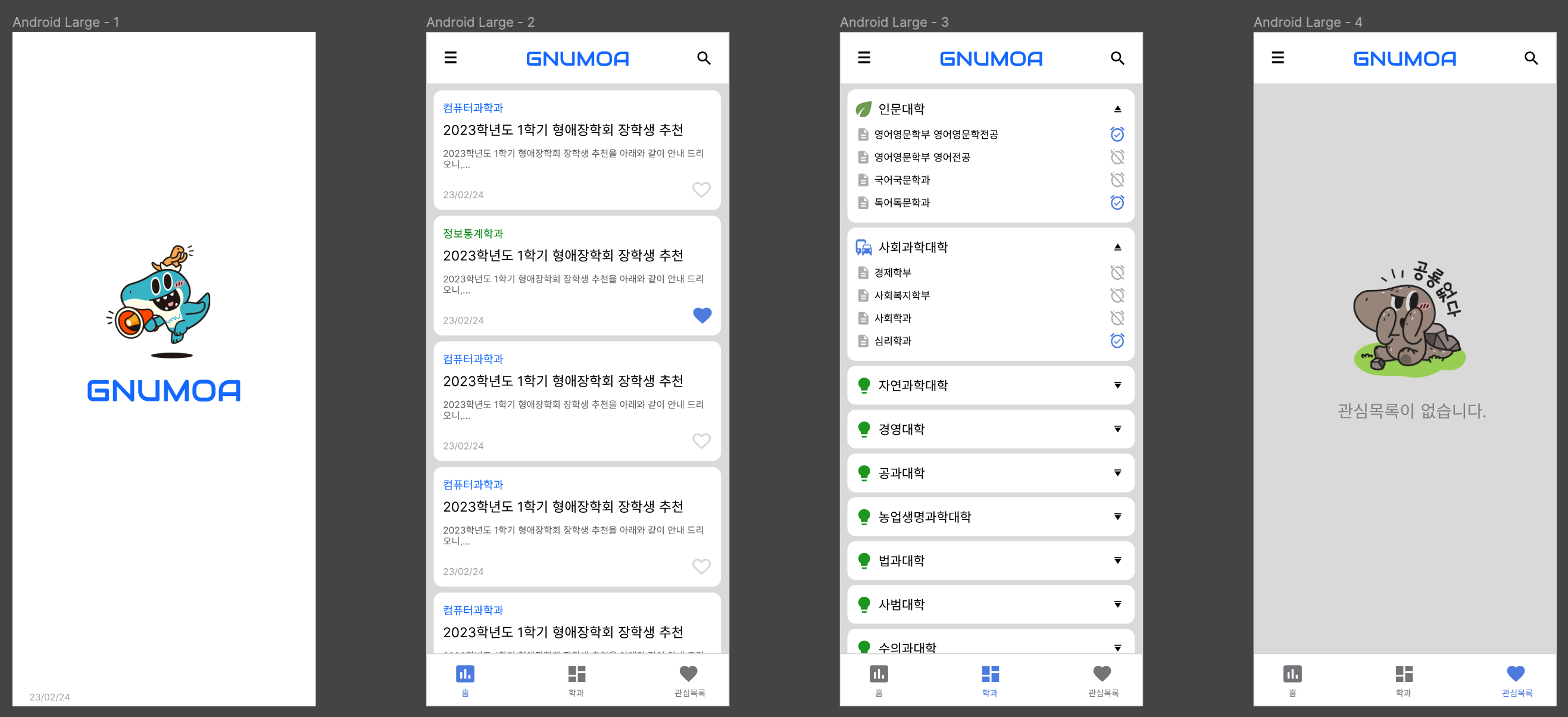 기획 배경으로는 우리 학과 같은 경우는 감사하게도 공지사항을 크롤링해주는 공지 봇을 서비스중이였기에 간편히 공지사항을 받아볼 수 있었지만, 다른 과 같은 경우는 그러한 공지 봇이 없어서 학생이 스스로 찾아 보는 경우가 더 많았다. 그래서 이러한 정보 격차를 없애고자 프로젝트를 기획하게 되었다! 플랫폼 이름은 경상국립대학교의 마스코트인 캐릭터 '지누'와 모은다의 의미를 가진 '모아'를 합쳐서 '지누모아'로 정했다.