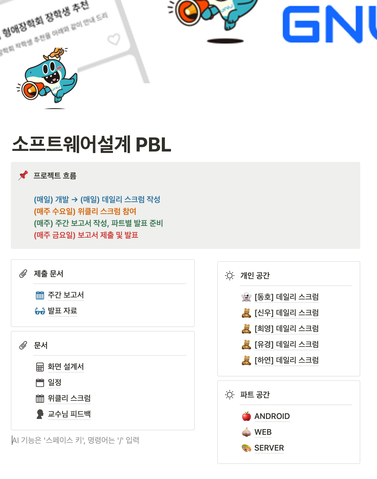 아무래도 다른 친구들보다 프로젝트 경험도 많고, 고학번이였기에 망설임 없이 PM 역할을 자처하게 됐다. (사실 내가 PM 경험을 해보고 싶은게 가장 컸다.)