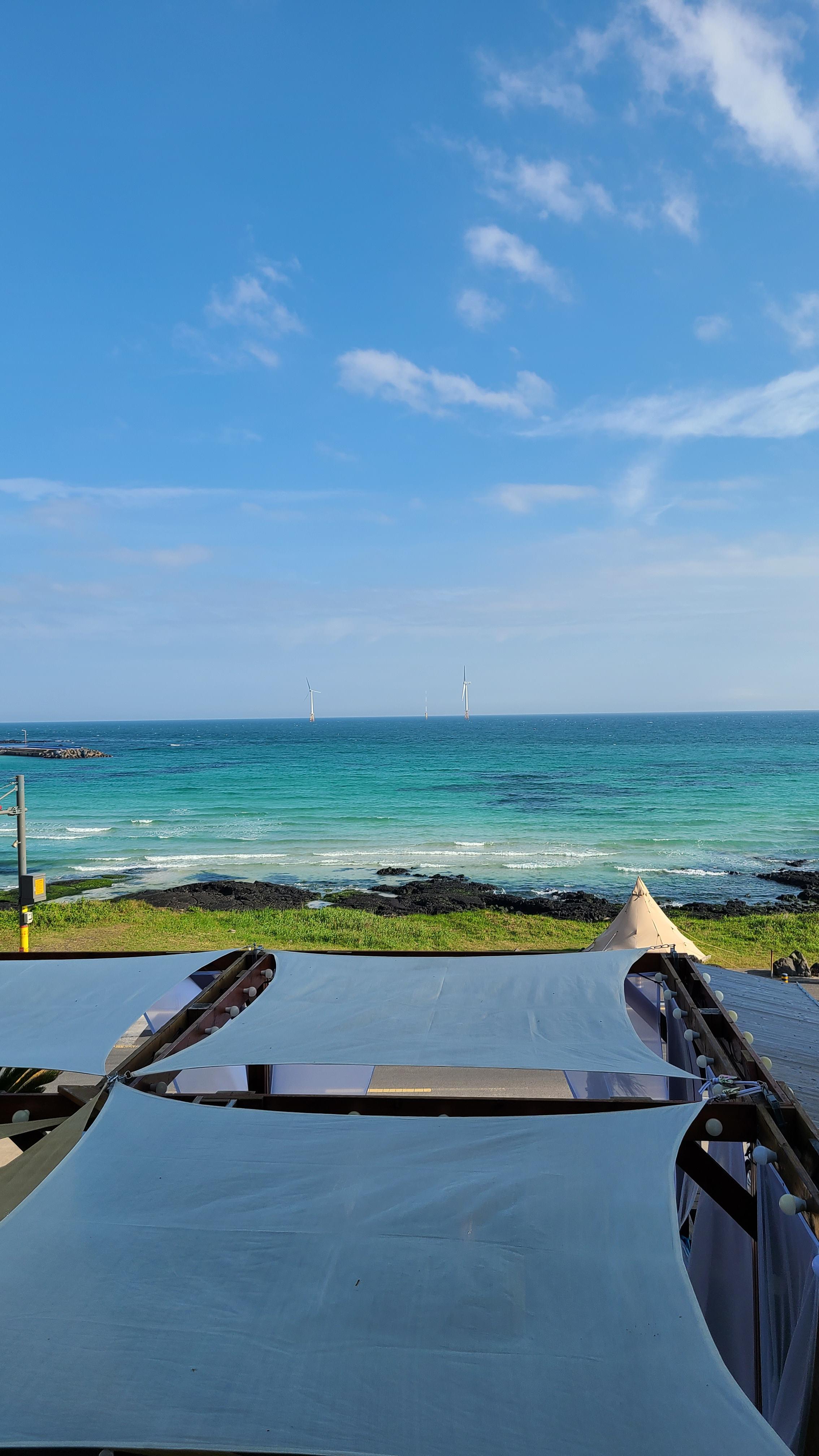 부산에서는 볼 수 없는 제주도의 푸른 색 바다가 눈 앞에 펼쳐지니 기분이 너무 좋았슴돠..