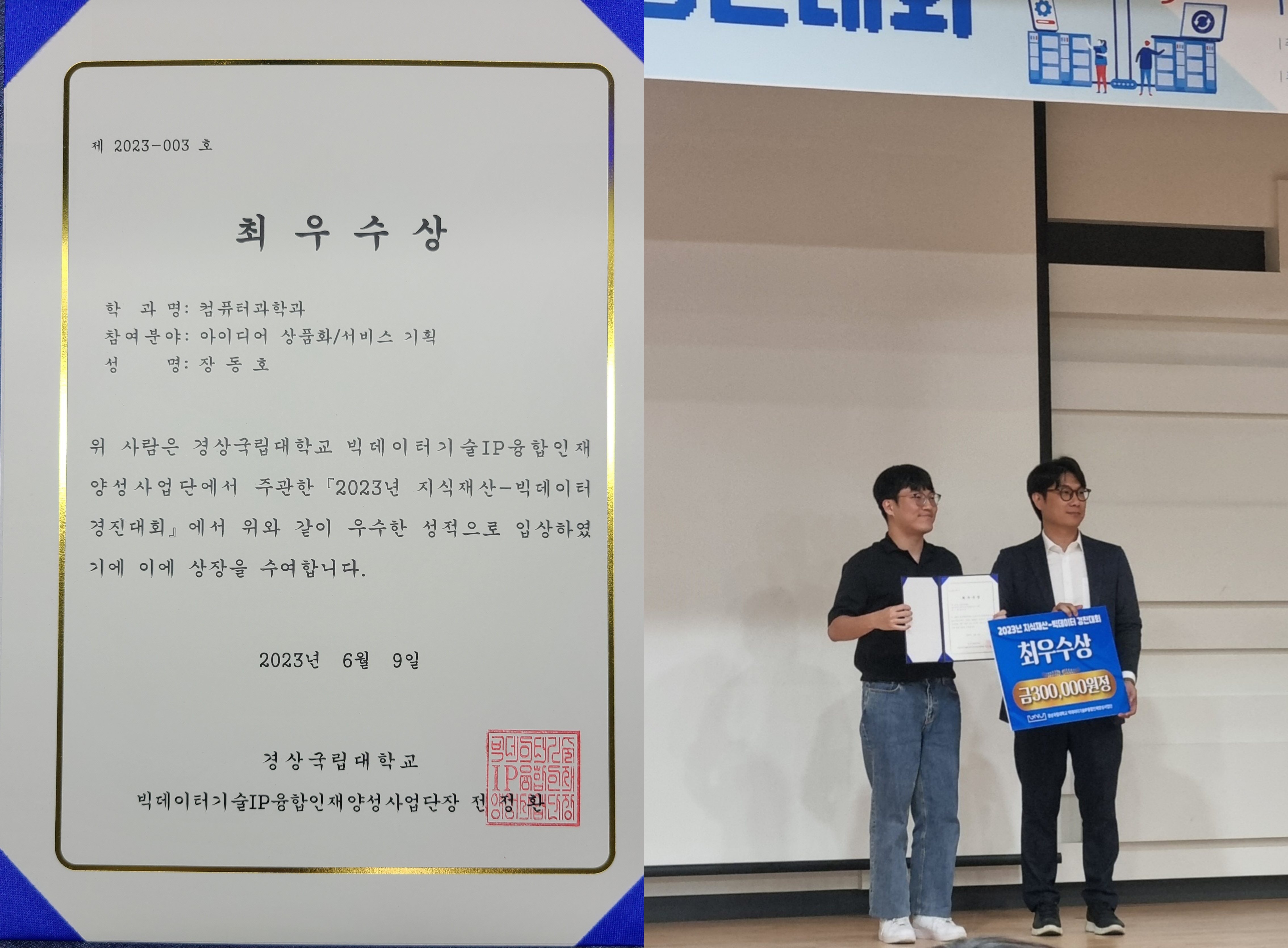 짠 이 아이디어를 가지고 지식재산-빅데이터 경진대회에도 제출했는데 최우수상을 받았다.