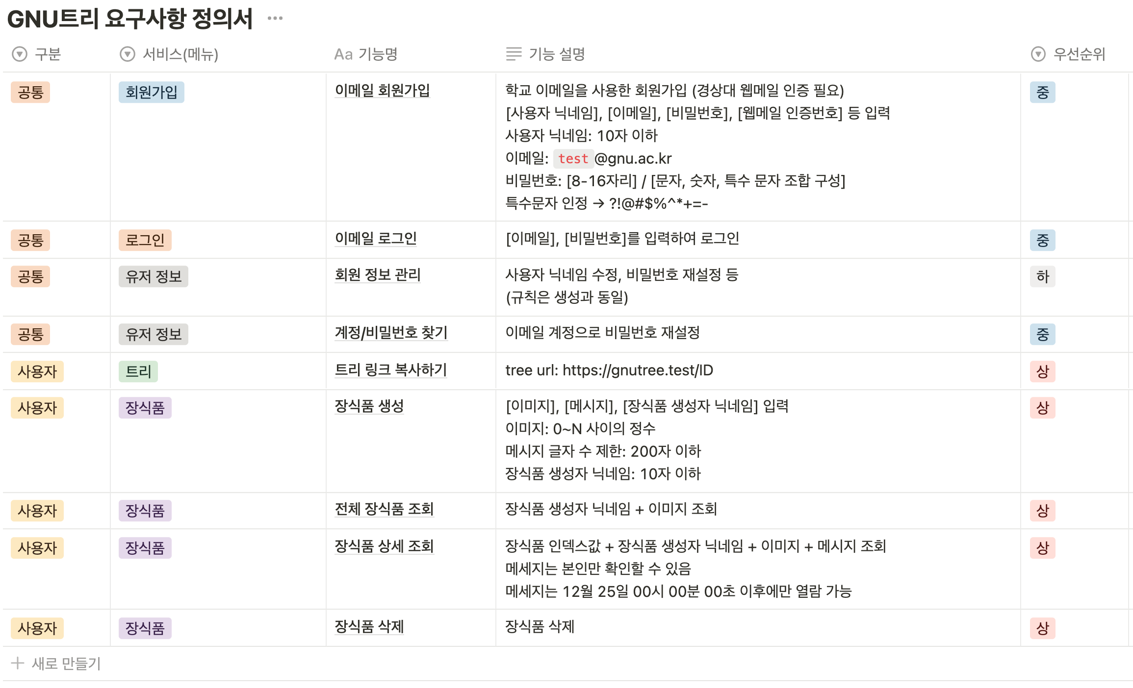 요구사항 정의서 작성